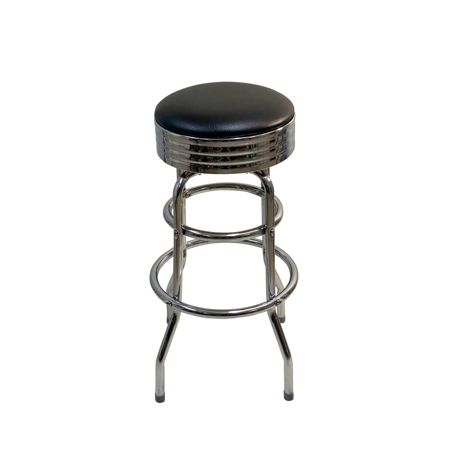 Bar Stool, backless, upholstered seat with band, chrome frame, double round footring, COM/grade 4 uph., (Special Order – 1 to 2 weeks lead time),