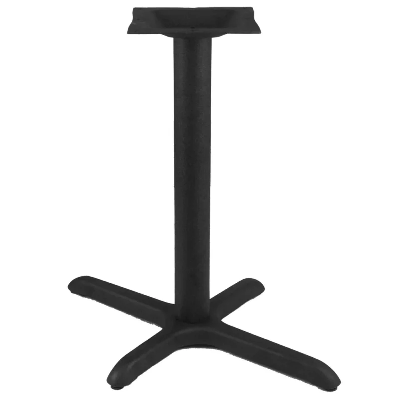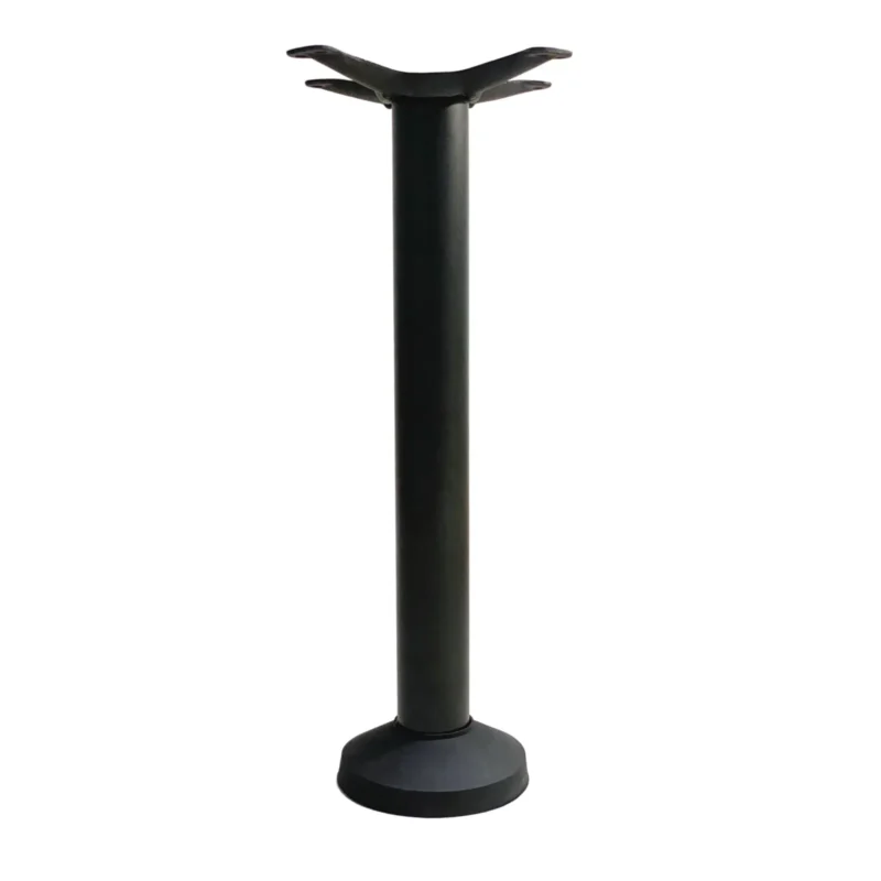 Table Base, 30″ round base, bar height, 4″ dia., column welded with an 11″ square spider plate (TCS3754), rubber glides, stamped steel, electro-coated, black finish, recommended sizes: 36″ or 48″ or 60″ round/square tops, Quick Ship.