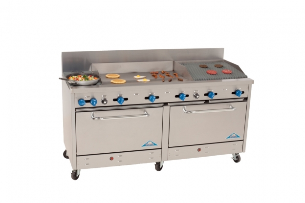 Comstock-Castle 2F330-36-2RB 72″ Gas Restaurant Range w/ (2) Open Burners, (1) 36″ Griddle, (1) 24″ Charbroiler, (2) Standard Ovens, 246.000 BTU