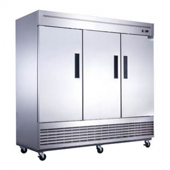 Dukers Appliance Co D83R 82″ Three Section Reach-In Refrigerator w/ 3 Solid Doors, Bottom Mount, Stainless Steel, 65 cu. ft.