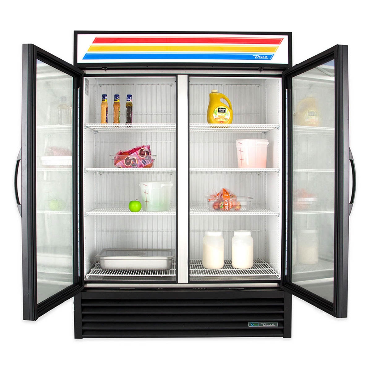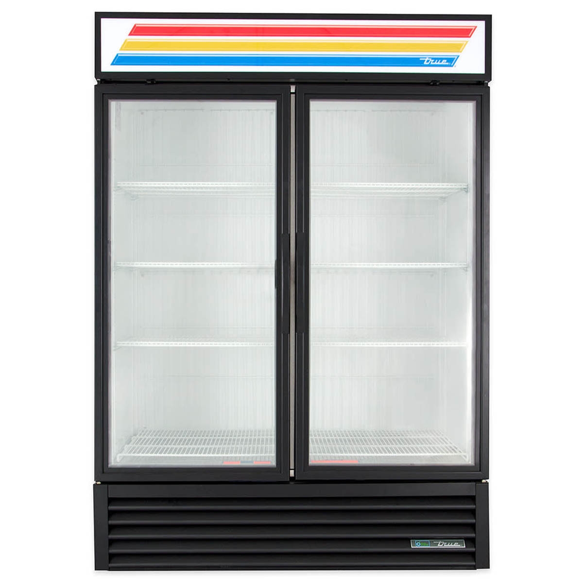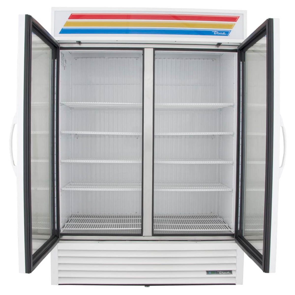 True   54″ Two Glass Swing Door Merchandiser Freezer in White, 44 Cu. Ft.