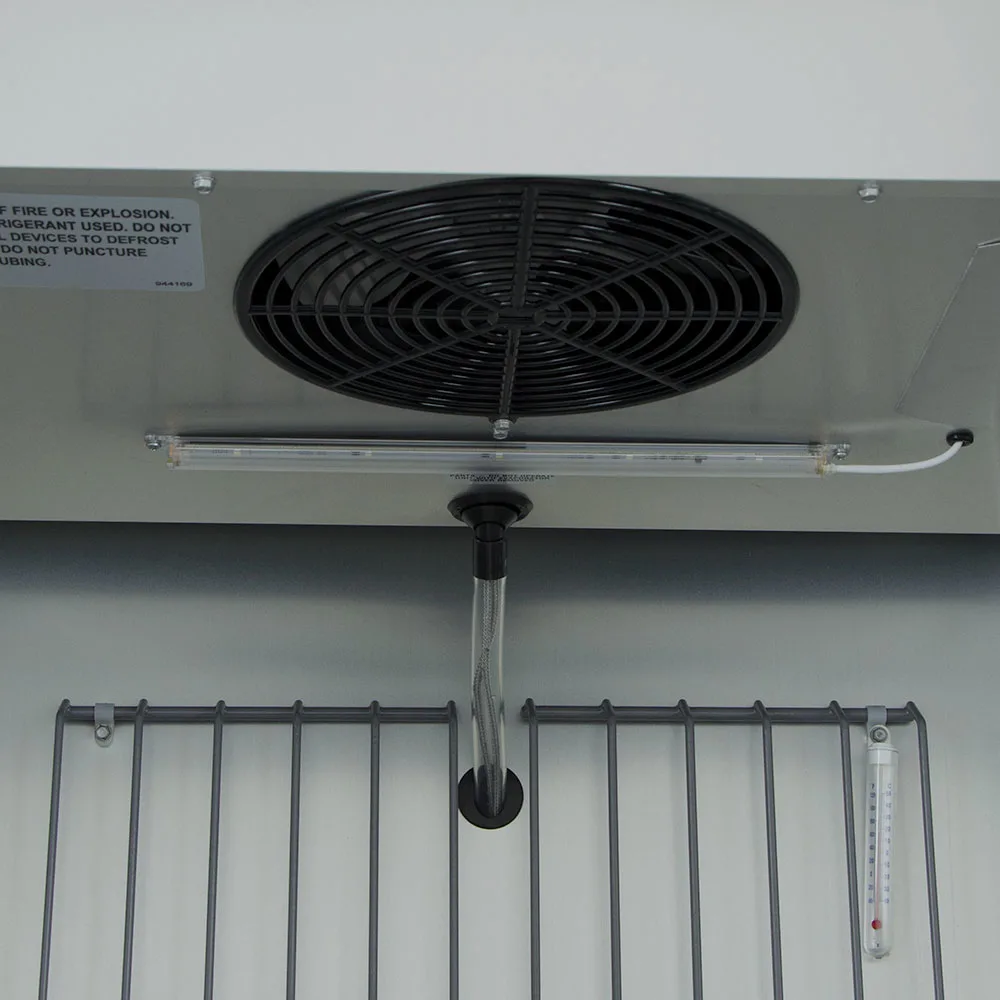 The condenser fan motor in this unit runs in reverse for 20 seconds when it turns on, removing debris, dirt, and dust from the condensing coil. With this component being so integral to system operation, cleaning it regularly ensures the system functions reliably and efficiently. This self-cleaning also helps to maintain cold and consistent storage temperatures while reducing energy consumption. Even though this reversing fan motor doesn’t eliminate routine maintenance requirements, it should lengthen the life of the unit.