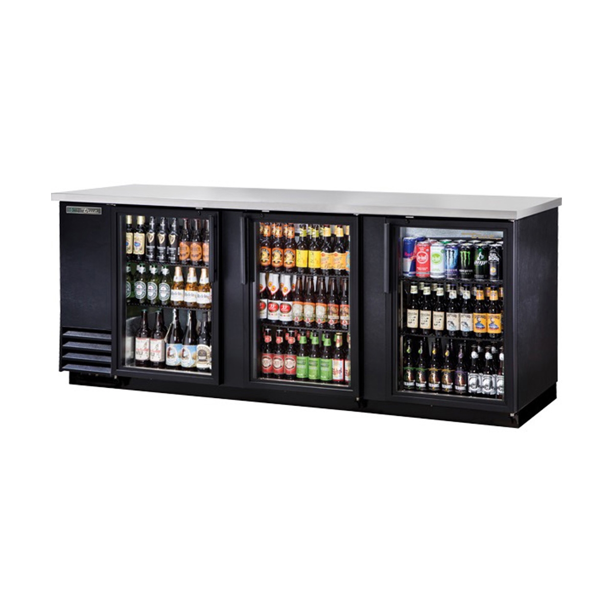 True 90″ Three Glass Swing Door Back Bar Cooler with LED & Hydrocarbon