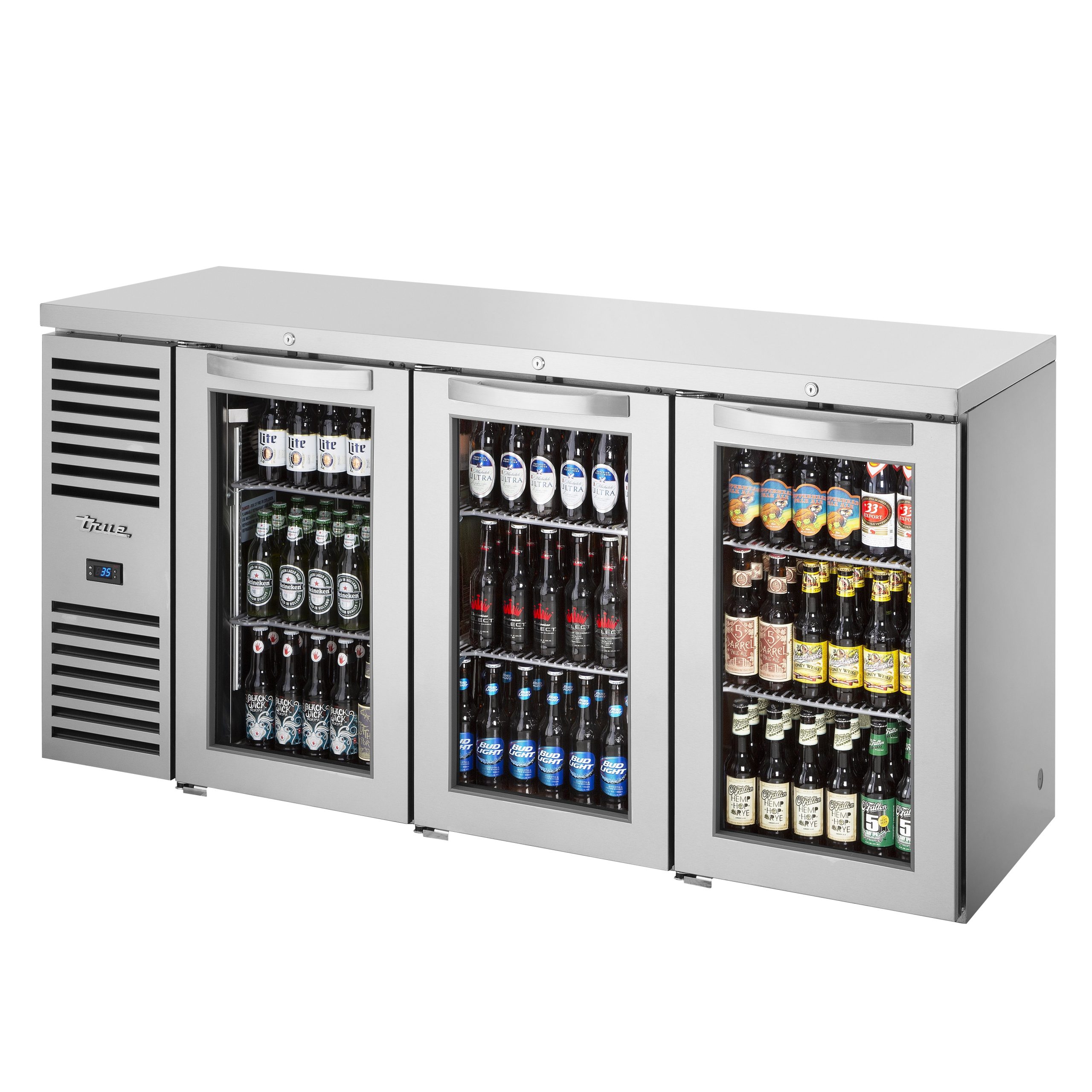 True TBR72-RISZ1-L-S-GGG-1 72″ 3 Glass Swing Door Back Bar Refrigerator with LED Lighting