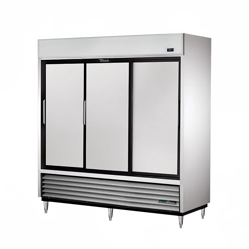 True 78 1/10″ Three Section Reach In Refrigerator, (3) Sliding Solid Doors, 115v