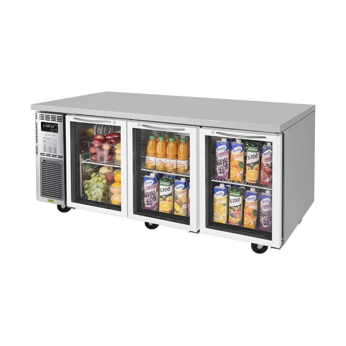 Turbo Air 70″ 3-Section Undercounter Refrigerator w/ 3 Glass Doors, 19 cu. ft.