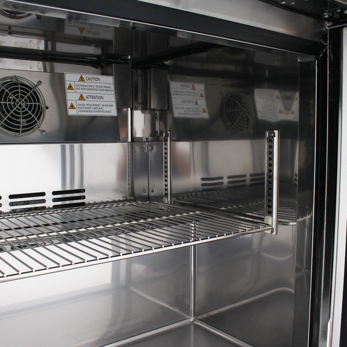 Shelves are the most important part of cleanliness as they come in direct contact with food. After a while, PVC coated wire shelves may peel, rust and lead to unsanitary conditions. Only the Turbo Air Super Deluxe series uniquely provides stainless steel shelving.